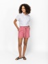 Női vászon rövidnadrág, bővebb szabással, combközépig érő hosszal, svéd és hátsó zsebbel. Gumírozott, megköthető derékkal, len hatású anyaggal. Anyaga: 65% pamut, 35% viszkóz. A modell 175 cm magas, S-es méretet visel.Kevesebb infó